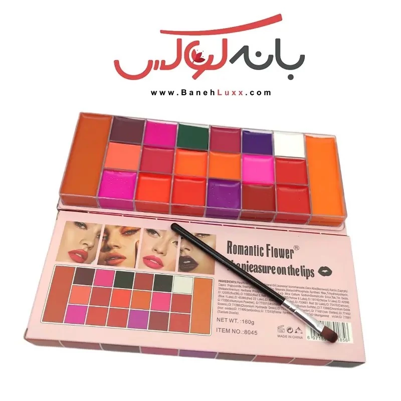 پالت رژلب 20 رنگ گریمی رومانتیک فلور با پیگمنت بالا و مقاوم در برابر آب و حرارت