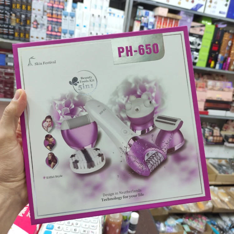 اپلیدی 5 کاره فیلیپس هلند مدل PH 650- دارای سری سرامیکی با روکش میکرو 72 موچین حرفه ای همراه با سنگ پا و ماساژور صورت