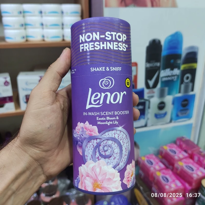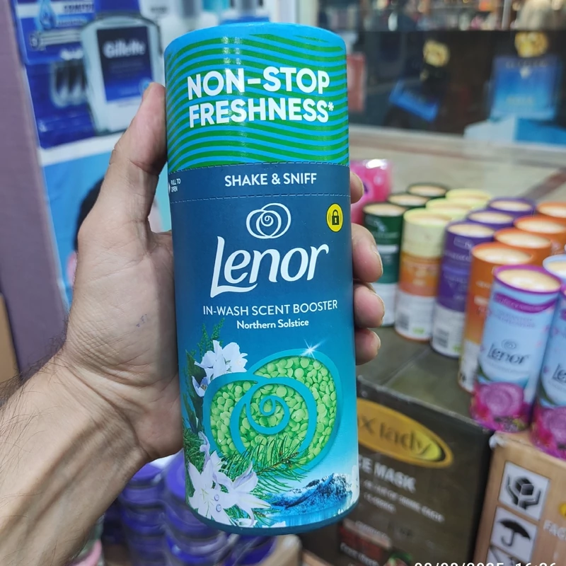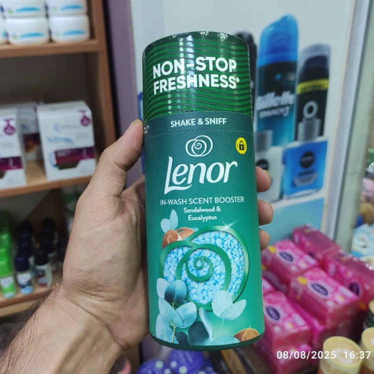 خوشبو کننده لنور انواع رایحه های معطر گیاهی این محصول برای افزودن بوی خوش ماندگار به لباسها در حین شستشو استفاده میشود برای استفاده، مقداری از دانهها را مستقیماً به درام ماشین لباسشویی قبل از قرار دادن لباسها اضافه کنید. این محصول با نام "Sandalwood & Eucalyptus In-Wash Scent Booster" نیز شناخته میشود. باعث طراوت و تازگی مداوم لباسها میشود.