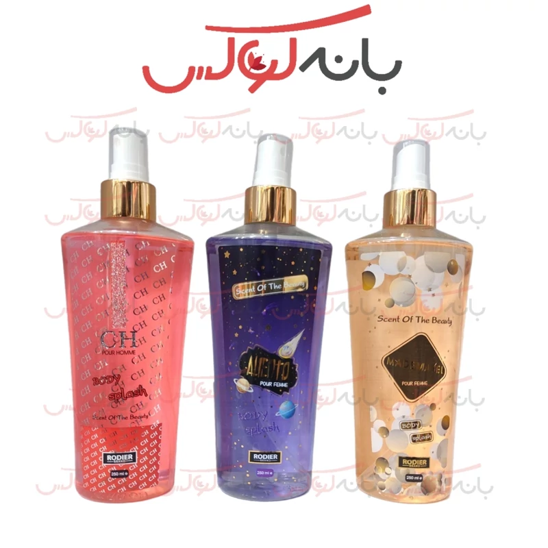 بادی اسپلش رودیر 250 میل با رایحه های ادکلن لجند و ایفوریا و مادمازل و النتو و سی اچ و اکسنتو سفارش امارات با ماندگاری