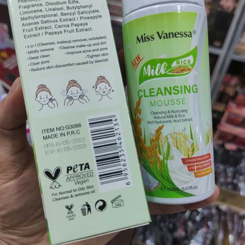 فوم شستشوی صورت برنج و شیر Miss Vanessa