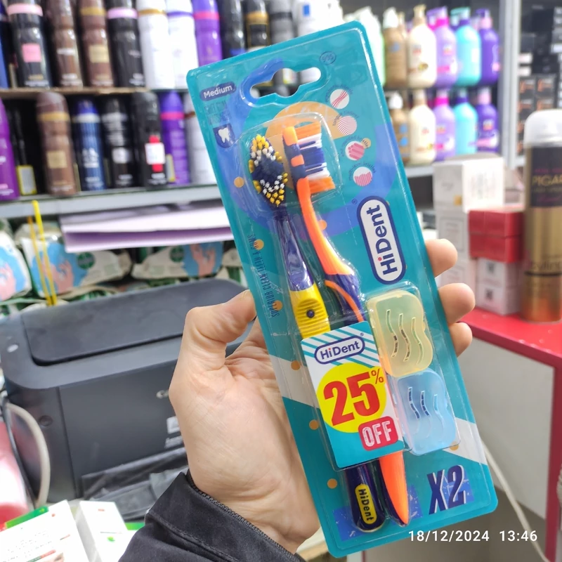 مسواک مدیوم هایدنت زبان شوی آن در پشت سر مسواک با هدف پاکسازی زبان از باکتری های مولد بوی بد دهان طراحی شده است. همچنین ماساژ لثه و بهبود گردش خون در آن به وسیله ماساژورهای لثه طراحی شده در سر مسواک امکان پذیر میشود به منظور پاکسازی تمام سطوح دندانها و فضای بین دندانی برس این مسواک به صورت نامسطح و دارای انحنا طراحی شده است و انتهای گرد شده الیاف مسواک از آسیب به مینای دندان و لثه ها جلوگیری میکند . کنترل راحت مسواک در دست به دلیل طراحی ارگونومیک آن ترکیبات پلی پروپیلن ترموپلاست نایلون پلی آمید سیم مخصوص رنگدانه پلیمری نرم و راحت برس مدیوم کامل طبی حاوی لثه شور حاوی زبان شور