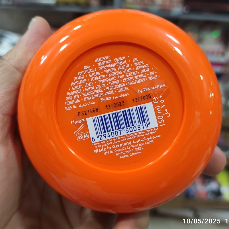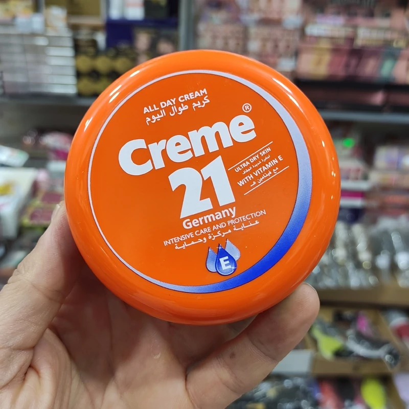 کرم مرطوب کننده 21 تحت لیسانس آلمان (سفارش عرب با کیفیت خیلی خیلی بالا) معجونی از عصاره های گیاهی و نایاب پوستی حاوی روغنگلیسیرین و گلیسیرین حاویروغن دانه کنجد و سویا حاوی روغن هیدروژنه نخل خرما مخصوص پوست های خشک و به شدت خشک مرطوب کننده و ابرسانی قوی 24 ساعته بهبود خشکی و زبری آزار دهنده پوست حاوی ویتامین E بهبود اگزما و التهابات پوستی مراقبت ویژه از پوست